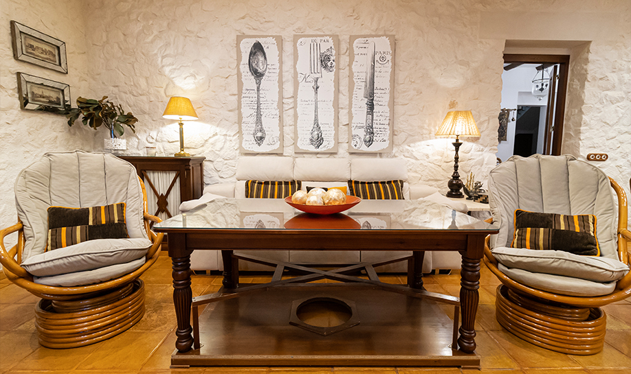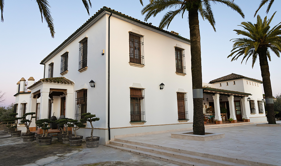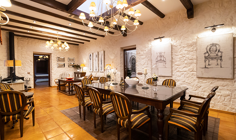 La finca dispone de amplios espacios interiores decorados con un gusto exquisito, materiales nobles, techos altos y detalles arquitectónicos que respetan la esencia andaluza, todo ello acompañado por acabados de alta gama y comodidades modernas. Cada rincón está pensado para el confort y el disfrute: todas las habitaciones suites con baño privado, cocina totalmente equipada de estilo profesional, salones acogedores con chimeneas y zonas de estar que invitan a desconectar, así como un salón externo donde realizar eventos y celebraciones.